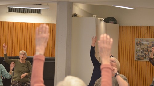 Et åbent fællesskab hvor vi laver stolegymnastik og bruger "Træn dig glad", vfra Ældre Sagen. Den består af et program som kan gøres stående eller siddende på et niveau, hvor alle kan være med. Kom og få rørt dig, og få samtidig hyggeligt samvær med andre ældre. Der vil være vand, kaffe og te til rådighed.